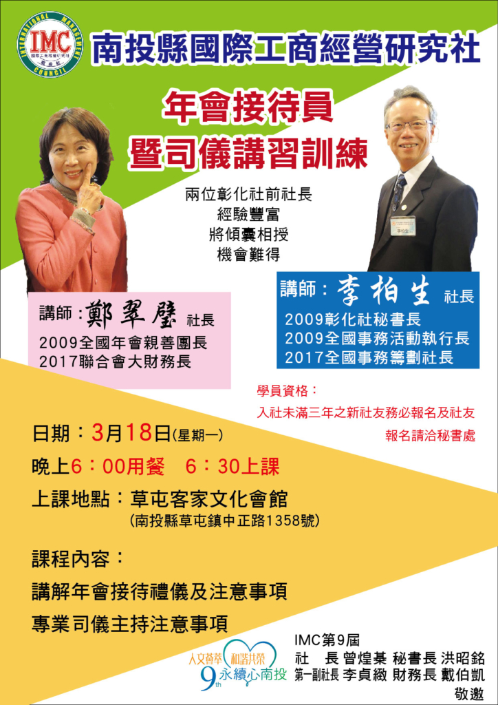 年會接待員暨司儀講習訓練 管理員2019-03-17T17:18:02+08:00 請選擇您想分享此商店的平台! FacebookXRedditLinkedInWhatsAppTumblrPinterestVkXingEmail: 相關文章: 2025年9、10月份南投社電子月刊 2025年9、10月份南投社電子月刊 20251019 登山隊交接 20251019 登山隊交接 20251017 苗栗社交接 20251017 苗栗社交接 20251016 工商觀摩 20251016 工商觀摩